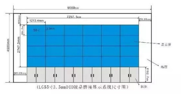 液晶拼接屏一般都不會(huì)布滿一整面墻,上面和兩邊一般都要留一點(diǎn)操作距離,如下圖所示: