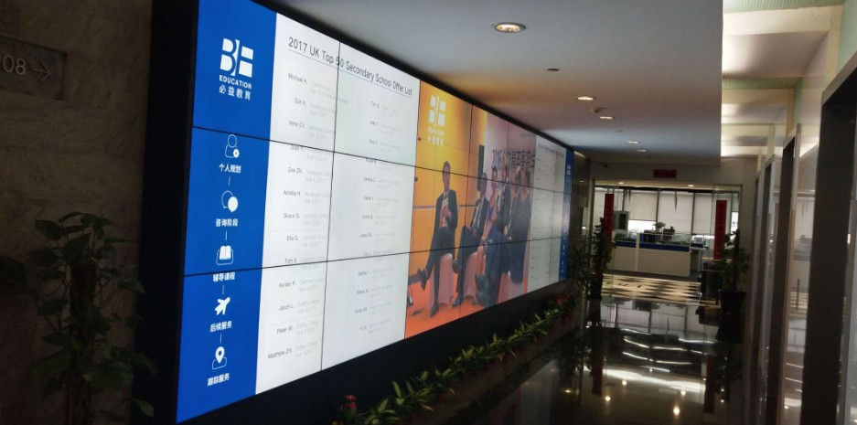 素希用21臺三星55寸液晶拼接屏打造3*7拼接的上海必益教育培訓案例: